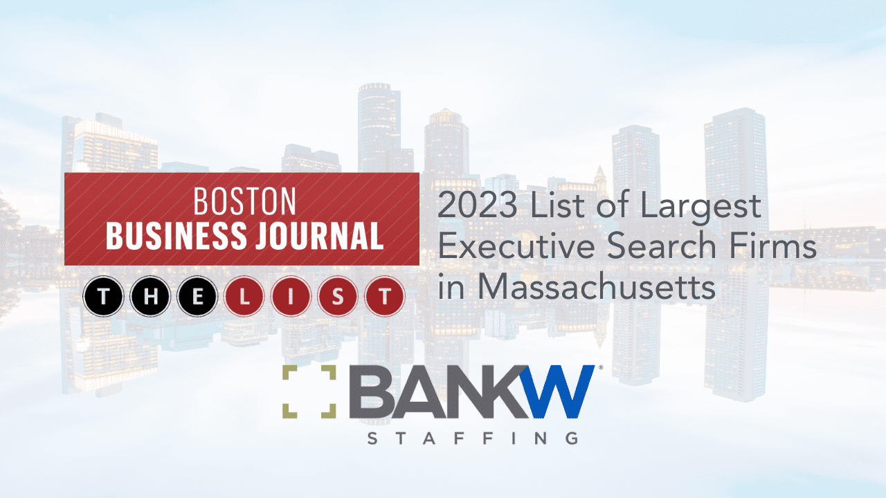 “It is an incredible accomplishment for our company to be ranked as a top 10 largest executive search firm in Massachusetts. Our placement on the list is achieved through our employee’s hard work and ongoing dedication to client and candidate satisfaction. “ comments BANKW Staffing’s COO and Co-Founder, Matt Nagler.